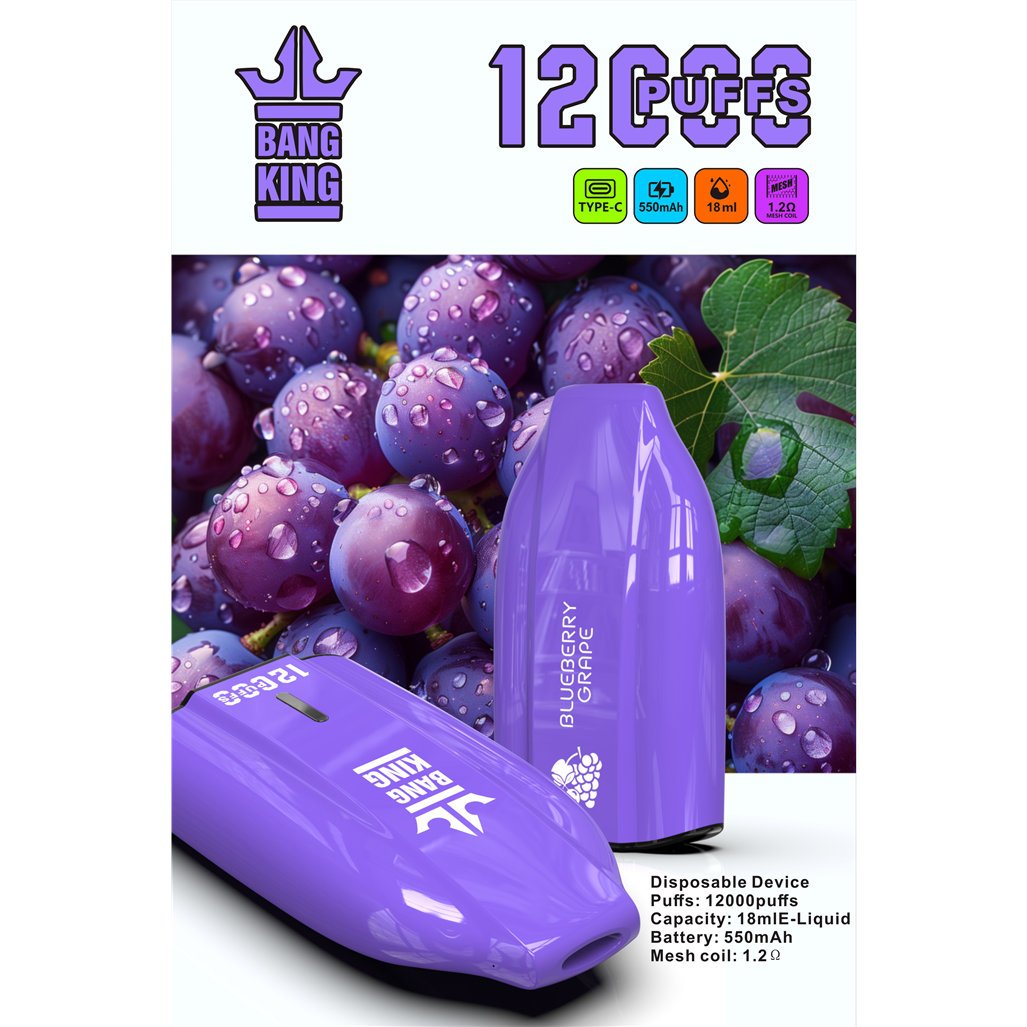 Die kompakte Größe, das geringe Gewicht und das große E-Liquid-Fassungsvermögen des Bang King 12000 Blueberry Grape Vape machen ihn ideal für den täglichen Gebrauch, insbesondere für Nutzer, die ihn lange nutzen und die E-Zigarette nicht häufig wechseln möchten. Wer gelegentlich Ladezubehör dabeihaben möchte, findet mit dem Bang King 12000 die perfekte Balance zwischen Tragbarkeit und Funktionalität.