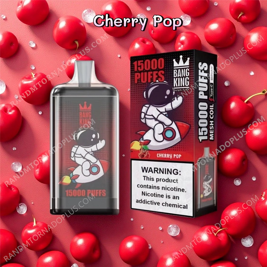 Die Bang King 15000 Cherry Pop E-Zigarette bietet ein lebendiges, reichhaltiges Kirscharoma mit einer ausgewogenen Mischung aus süß und sauer, einem zarten, fruchtigen Geschmack und einem erfrischenden Abgang.