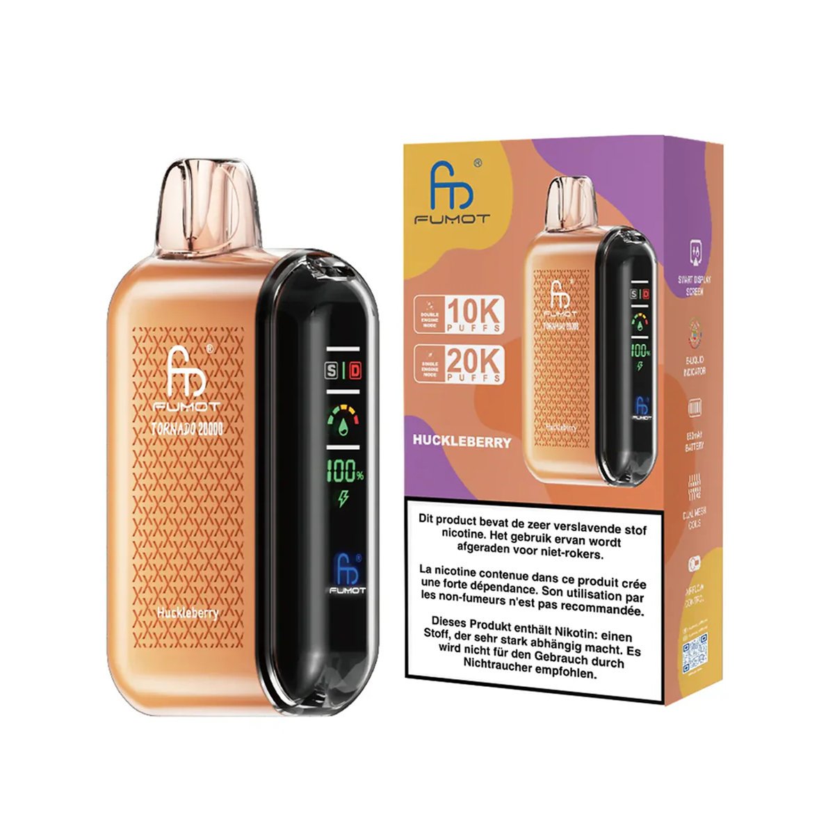 Fumot Tornado 20000 Huckleberry ist ein Vape für Kenner. Es vereint die ursprüngliche Wildheit von Waldbeeren, die Komplexität ihrer süß-sauren Struktur und die feine Balance ihrer erfrischenden Wirkung zu einem eleganten und unvergesslichen Beerenerlebnis.