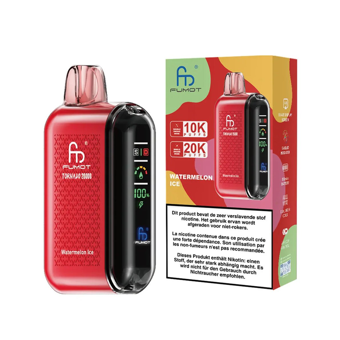 - Individuelles Erlebnis: Der Fumot Tornado 20000 bietet echte „2-in-1“-Funktionalität und ermöglicht es Ihnen, jederzeit und überall zwischen verschiedenen Dampfmodi zu wechseln.